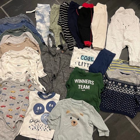 Fin klespakke til gutt i størrelse 68. Klærne er i god stand uten hull og flekker.