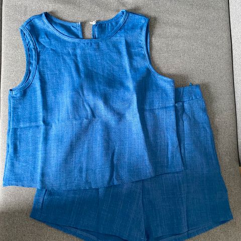 Behagelig og fint sett bestående av shorts og skjorte i bomullsmusselin lignende stoff.