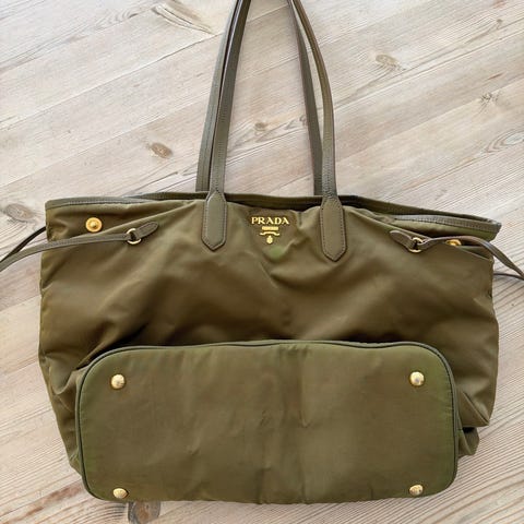 Rosa Prada canvas tote bag i fin stand. Kommer kun med autentiseringskort. Tegn til bruk over hele veske, men mest på hjørnene og håndtakene. Mål: ca 19cm x 27cm x 15cm