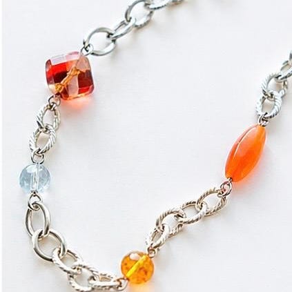 Kjedet er ca. 70 cm langt og kan brukes både som enkelt kjede eller med to rader.