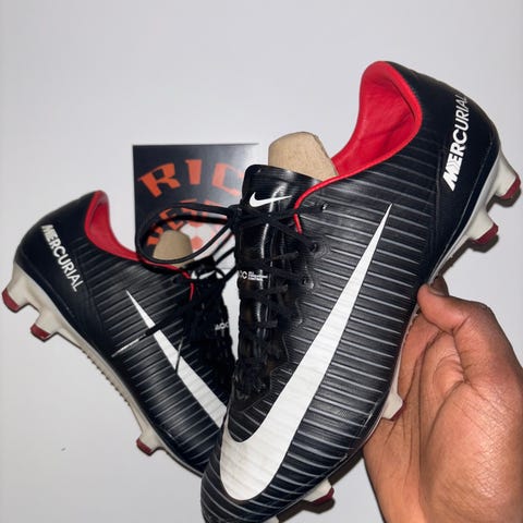 Skoene er bare prøvd og funksjonelt som nye. Eneste bemerkelser på utseende er litt maling som vist på siste bildet. I swoosh logoen er det også litt misfarget etter kunstgress. Veldig lite synlig begge deler.