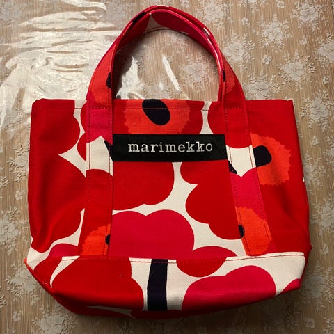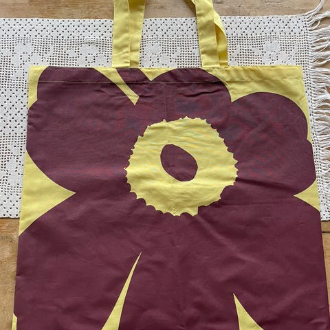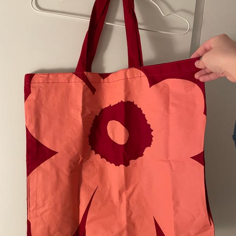 Marimekko Unikko bærepose i plast. Dimensjonene er 36,5 cm x 40 cm