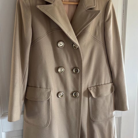 Selger en pent brukt kåpe i ull-lignende materiale.