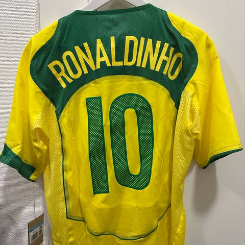 Selger en kjempefin drakt med Ronaldinho på ryggen fra Brasil 2004. Dette er en trøye fra 2004, og ikke re-issue utgaven :)