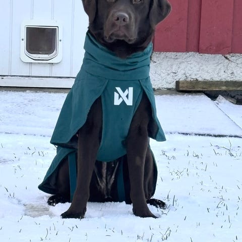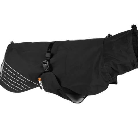 Selger en heldress til hund, fin når det regner mye og er sølete for å holde hunden ren. Selges billig pga en litenskade/produksjonsfeil i søm. Min hund hater å gå med dette, så derfor ble det ingen suksess. Brukt 1 gang. Str 65