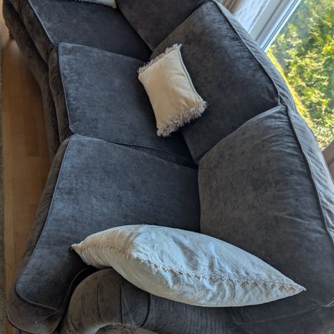 Selger en 2-seter sofa i semsket skinn. Sofaen er ekstremt myk og komfortabel, med dype og tykke puter som gjør den himmelsk deilig å både sitte og ligge i.