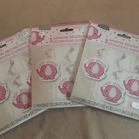 Har også flere baby shower/ gender reveal pynt og ballonger, kan lage pakker om ønskelig