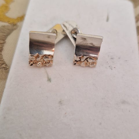 Er i matt og blank 14 karat hvitt gull. En halvpart av pynten formet som meanderbord. Både stoppere og selve øredobber stemplet 585 samt Σ31. Σ, eller Sigma er en av bokstavene i det greske alfabetet.