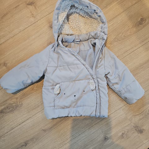 Myk og varm jakke med knapper, begge sider kan brukes ( grå/blå )