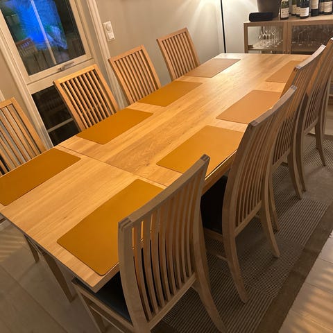 Selger et moderne og romslig spisebord med 8 komfortable stoler – perfekt for store familier eller deg som elsker å samle venner til middag!