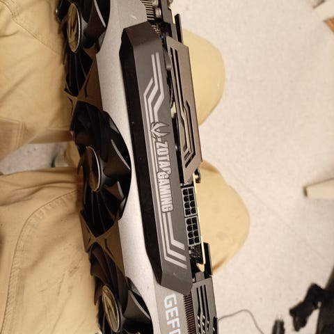 Selger et ZOTAC GeForce RTX 3090 Trinity OC med 24 GB GDDR6X-minne. Dette er et ekstremt kraftig skjermkort som fortsatt leverer rå ytelse i 1440p og 4K gaming, videoredigering, AI, og tung 3D-rendering.