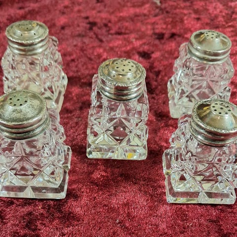 Originale britiske militære salt- og pepperbøsser, sølvplett, WWII 1945