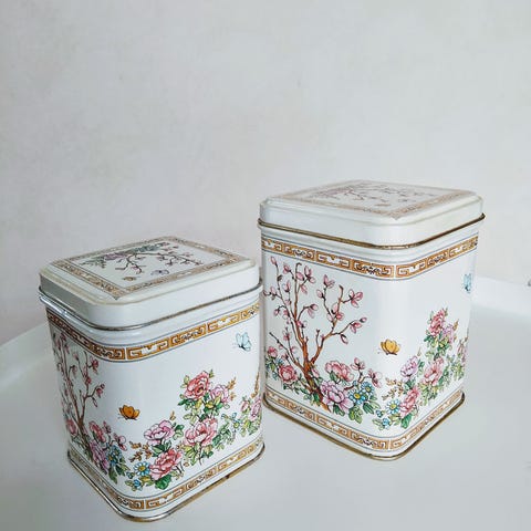 Vintage dekorative bokser laget av metall. Boksene har orientalske motiver, ideelle for oppbevaring eller som dekorative elementer i hjemmet. Alle er hele og pene både utenpå og inni. 50 kr. pr. boks, eller 400 kr. for alle.