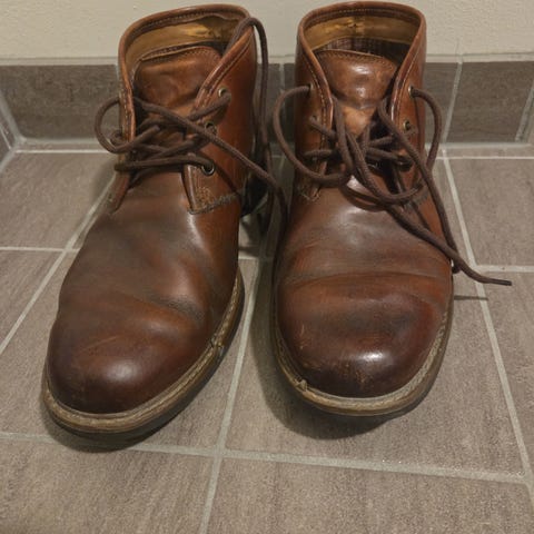 Pent brukt Weekender Chukkas som har forlatt huset mitt kun rundt 10~ ganger. Copper Rough & Tough skinn utvikler seg til utrolig fin patina over tid, lett min favoritt type skinn av Red Wing. Type 3322. Lette og komfortable sko til alle aktiviteter, veldig behagelig såle. Selges kun fordi de er en smule for små for meg. Medfølger to andre par lisser enn i tillegg til de som er på. Smører med Red Wing sin krem til skinnet før forsendelse.
