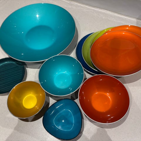 Retro Emalox coasters og beger i original eske - samleobjekt flerfarget