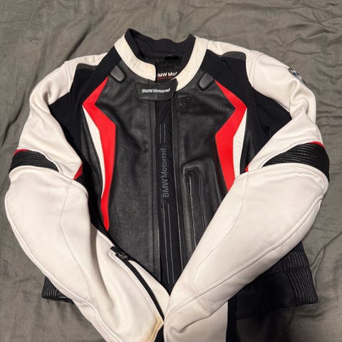 Selger en pent brukt BMW Motorrad Mc jakke i str.60 med mange kule detaljer. Har ikke inne foret. Kan sendes mot at kjøper betaler porto kr.69 eller hentes i Rygge. Se også gjerne mine andre annonser.