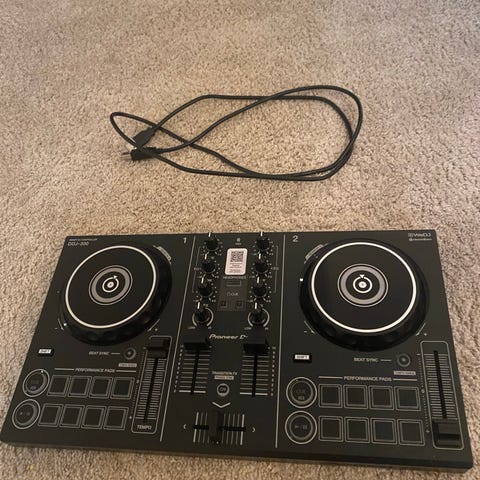 Selger ein pent brukt Pioneer DDJ-400 DJ-kontroller. Brukt kun eit par gonger, og fungerer som ny. Perfekt for nybegynnarar og hobby-DJ-ar som vil lære seg å mikse musikk med Rekordbox.
