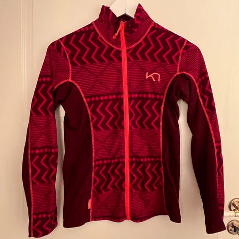 En rosa Full Zip Fleece jakke fra Kari Traa. I fin farge og mønster. Perfekt til tur.