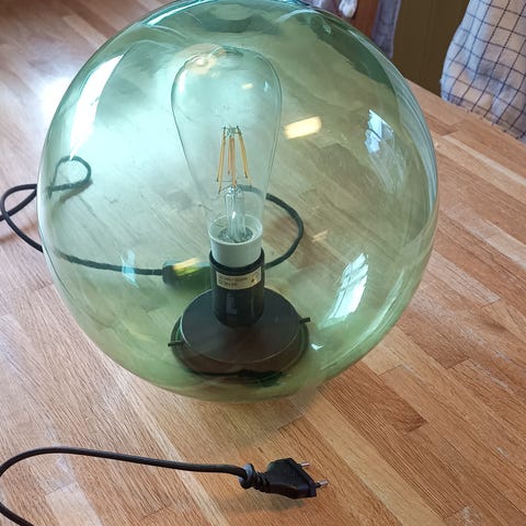 Rund lampe med pære og ledning selges da den ikke blir brukt. Sender ikke da jeg er redd den blir knust.