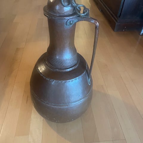 Denne har ett rustikk preg da den er i kobber som har irret.