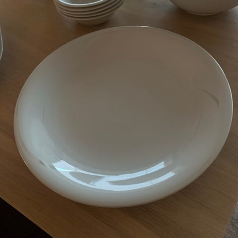 • 6 kuvert-/undtertallerkener (brukes som pyntetallerken under)