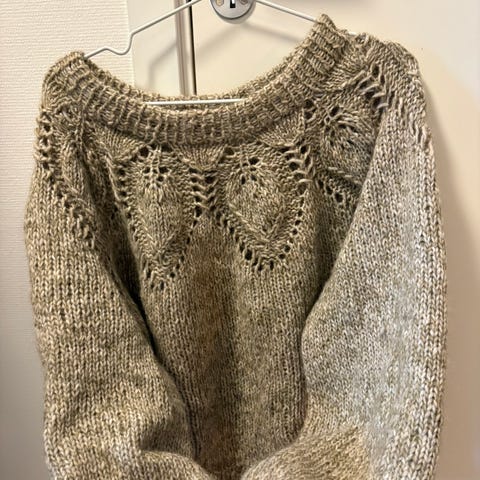 Rosa strikket genser, str M fra Nelly. Fine detaljer