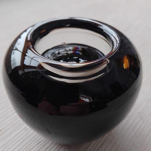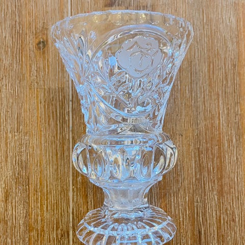 Søkeord: krystall germany tysk tyskland glassvase blomstervase kunstglass kunstglassvase amber hvit brun retro.