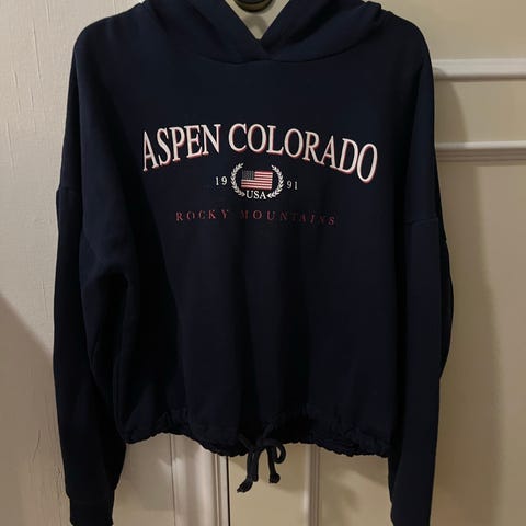 Selger en marineblå hettegenser fra Gina Tricot i størrelse M.