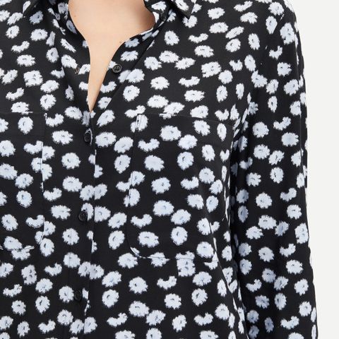 Women's 'Molly' shirt from Samsoe & Samsoe. Crafted from semi-sheer, lightweight fabric with an all-over abstract print, the blouse comprises a point collar, long sleeves and a full front button fastening. Accentuated with two tonal patch pockets at the chest. Complete with a curved hem and split buttoned cuffs.