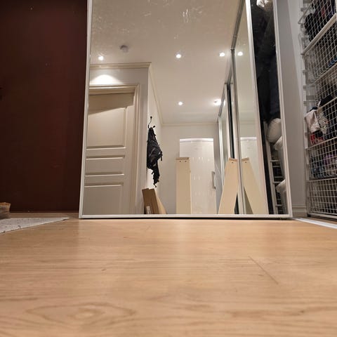 1 stk garderobeskap med speildører og lys.