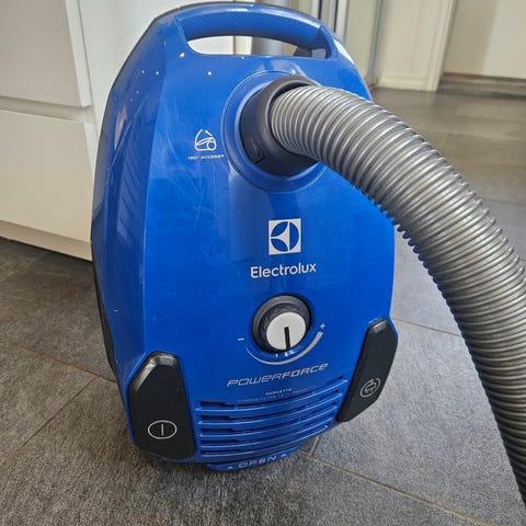 Selger to Electrolux PowerForce støvsugere (modell EPF62IS) i flott blå farge. Begge er pent brukte, fungerer som de skal og har god sugeevne. Perfekt til både tepper og harde gulv.