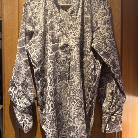 Eksklusiv og spesiell pen bluse fra By Malene Birger str 42. Ryggen er i 100% silke og fremsiden i vevd stoff acrylic, polyester og ull i gull og sort. Med denne pynteblusen skikker man seg ut i mengden og er kledd for små og store begivenheter.