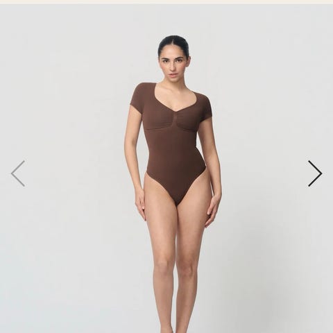 Elegant bodystocking med V-utrigning, smale skulderstropper og dyp V-formet utrigning på ryggen. Man finner plagget under activewear på deres nettside men den er fin å bruke i hverdagen også.