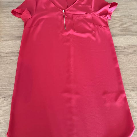 Rød kjole fra HM i str. 42, men vil si at den er litt liten i størrelsen.