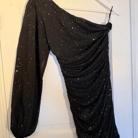 Lilla paljettkjole med en lang arm.