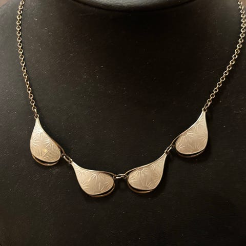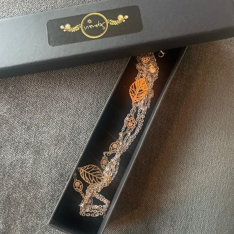 VÅGA halskjede .. Kjedet har et unikt design med lenker og vevd materiale, og er utstyrt med en praktisk lås. Passer til både hverdagsbruk og spesielle anledninger.