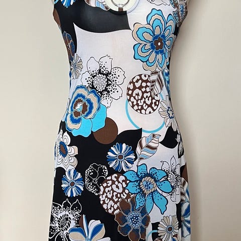Mønstret kjole/tunika fra Floyd by Smith, sort, grønn, hvit og beige, str.: XS
