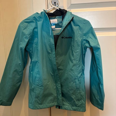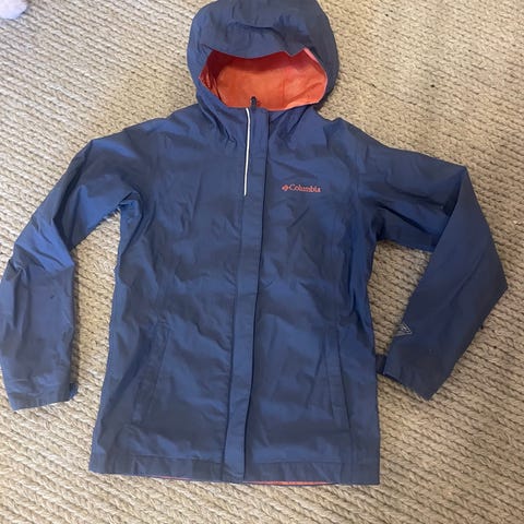 Colombia blålilla jakke med ferskenfarget for, vannavvisende lett jakke til vår/høst/tur. Str M, tilsvarer str 140 - 200 kr