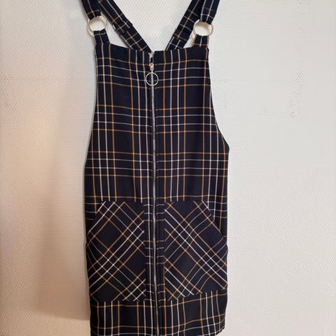 Utrolig kul kjole med lange ermer og høy hals. Skjult glidelås bak. Rutete. Litt tjukk i stoffet.