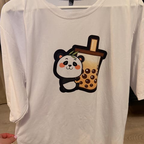 1 hvit hoodie (M)- 1 sort dame T-skjorte (L)- 1 stk labubu krus