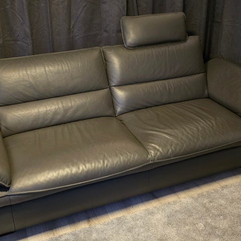 Synlig brukt 3+1 skinn Sofa. Behagelig å sitte på.Skinnende rent, nyttig med rimelig pris..
