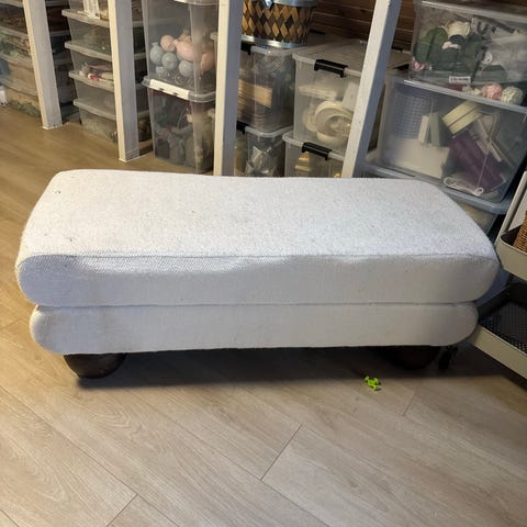 Brukt til DIY-prosjekt, så er noe lim under bena. Kan kanskje være vanskelig å bruke originale skruer, men ikke forsøkt.
