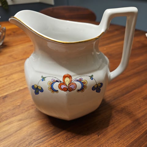 Med serveringsfat, fløtemugge , og 3 duker. Pris kan diskuteres