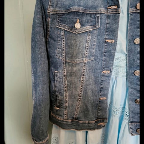 Grønn deminjakke i str S selges for 100kr. Fin vår/sommer og sensommerjakke som kan brukes til mye.
