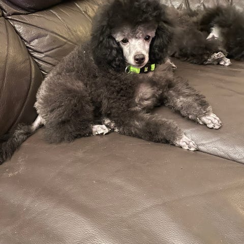 Mor er Mintha Pippi og far er Cooper, begge 3 1/2 år brune storpuddler.