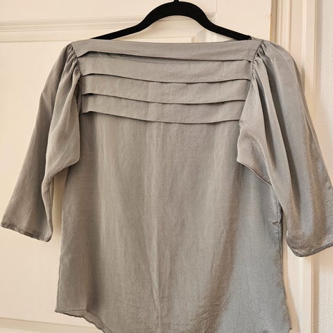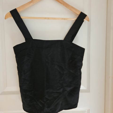Fin topp I sateng fra Pitava i str.40, pent brukt. Laget av 100% polyester. Toppen har strikk bak. Kan sende 🌿