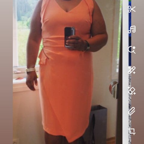 Brukt kjolen noen timer i bryllup. Kjolen er kjempe fin og passer veldig godt til flotte selskap.