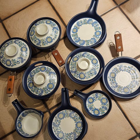 Stor skål,avlangt fat,3 skåler og 6 fruktfat