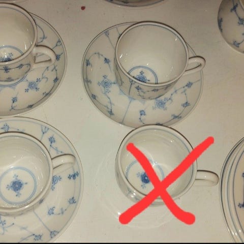 12 asjetter, 12 skåler , 7 kopper, fløte og sukker skål. Vet ikke hvilket merke det er . Måtte bare sette noe for å fullføre annonsen