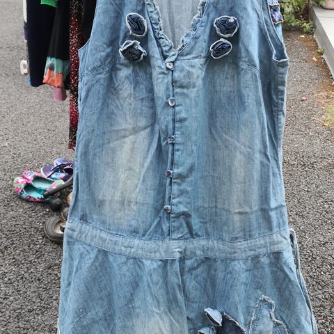 Mål: Bystevidde ca 112cm, vidde nederst ca 210cm, hel lengde ca108cm.